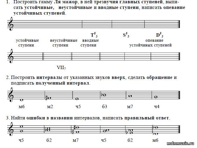 - Построить следующие интервалы от звука ля Ь и сделать обращение